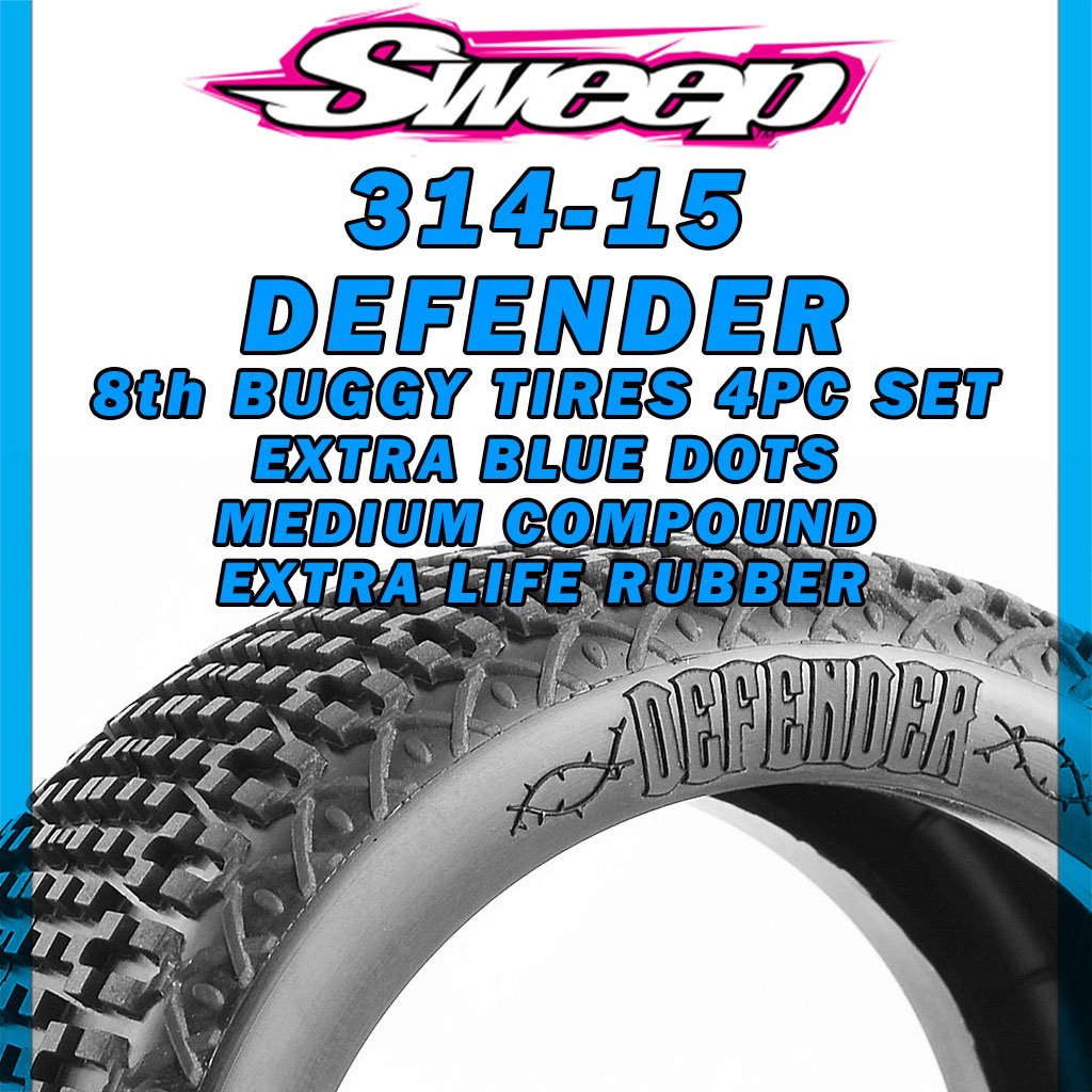 Defender 1/8 Buggy Tire (Four Pre-Mounted Tires) (Double Blue)