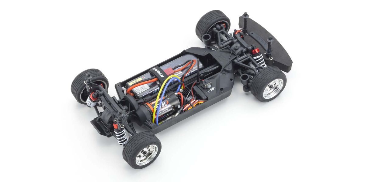 For the pure enjoyment of R/C car driving, the combination of a beautifully reproduced car body with the FAZER series chassis can’t be beaten. Kyosho has taken its standard touring car chassis and given it a full model makeover that has evolved performance to a new level. A simplified design with fewer parts has improved maintenance efficiency and reduced weight while core strength and rigidity has been increased through new materials and ribbing and stiffeners on front and rear. In addition, the symmetrical chassis design synergizes excellent front-rear balance through the suspension with responsive control, irrespective of power source. Featuring front & rear gear differentials, oil shocks and full ball bearing specs, the high durability and impact resistance allows drivers to unleash the full potential of the chassis. Brake disc wheel hubs with two different offsets (0mm, +5mm) provide compatibility with 190mm and 200mm width body styles and allows the wheelbase to be adjusted to 270mm by replacing some parts (sold separately) for compatibility with other 1/10 scale body styles, in addition the body included. The Readyset package comes fully assembled and includes everything except charger and battery for the chassis, and batteries for the transmitter.