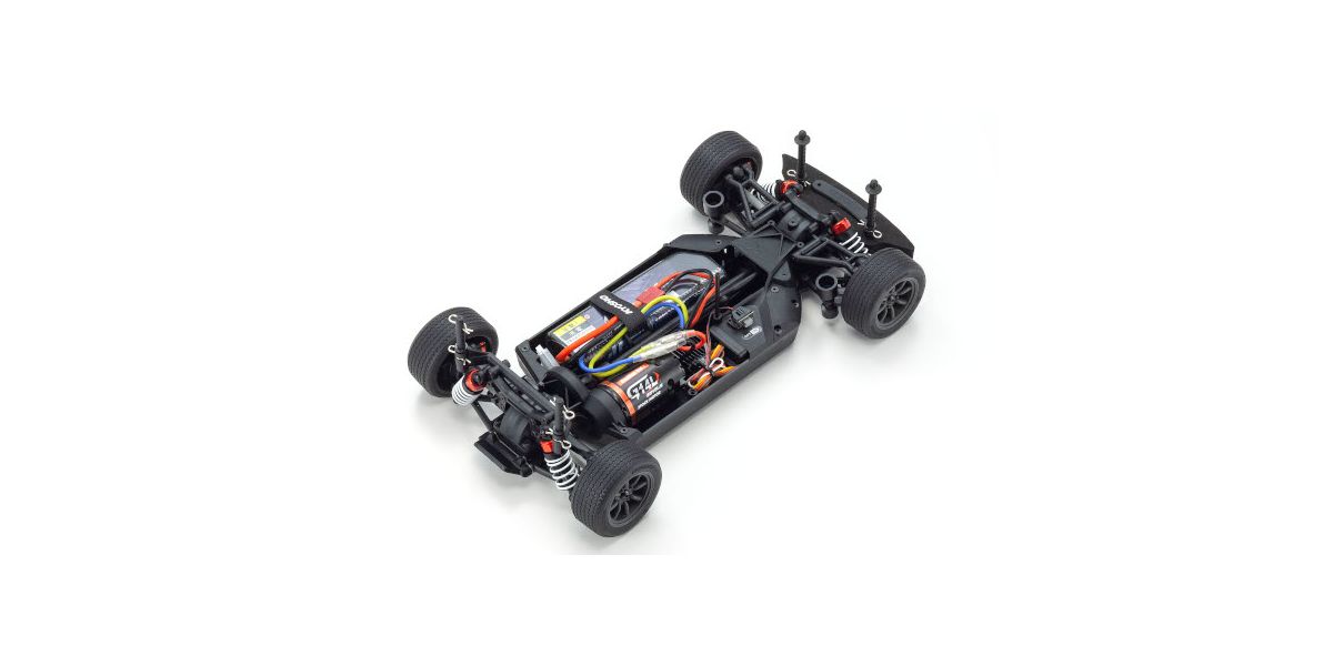 For the pure enjoyment of R/C car driving, the combination of a beautifully reproduced car body with the FAZER series chassis can’t be beaten. Kyosho has taken its standard touring car chassis and given it a full model makeover that has evolved performance to a new level. A simplified design with fewer parts has improved maintenance efficiency and reduced weight while core strength and rigidity has been increased through new materials and ribbing and stiffeners on front and rear. In addition, the symmetrical chassis design synergizes excellent front-rear balance through the suspension with responsive control, irrespective of power source. Featuring front & rear gear differentials, oil shocks and full ball bearing specs, the high durability and impact resistance allows drivers to unleash the full potential of the chassis. Brake disc wheel hubs with two different offsets (0mm, +5mm) provide compatibility with 190mm and 200mm width body styles and allows the wheelbase to be adjusted to 270mm by replacing some parts (sold separately) for compatibility with other 1/10 scale body styles, in addition the body included. The Readyset package comes fully assembled and includes everything except charger and battery for the chassis, and batteries for the transmitter.