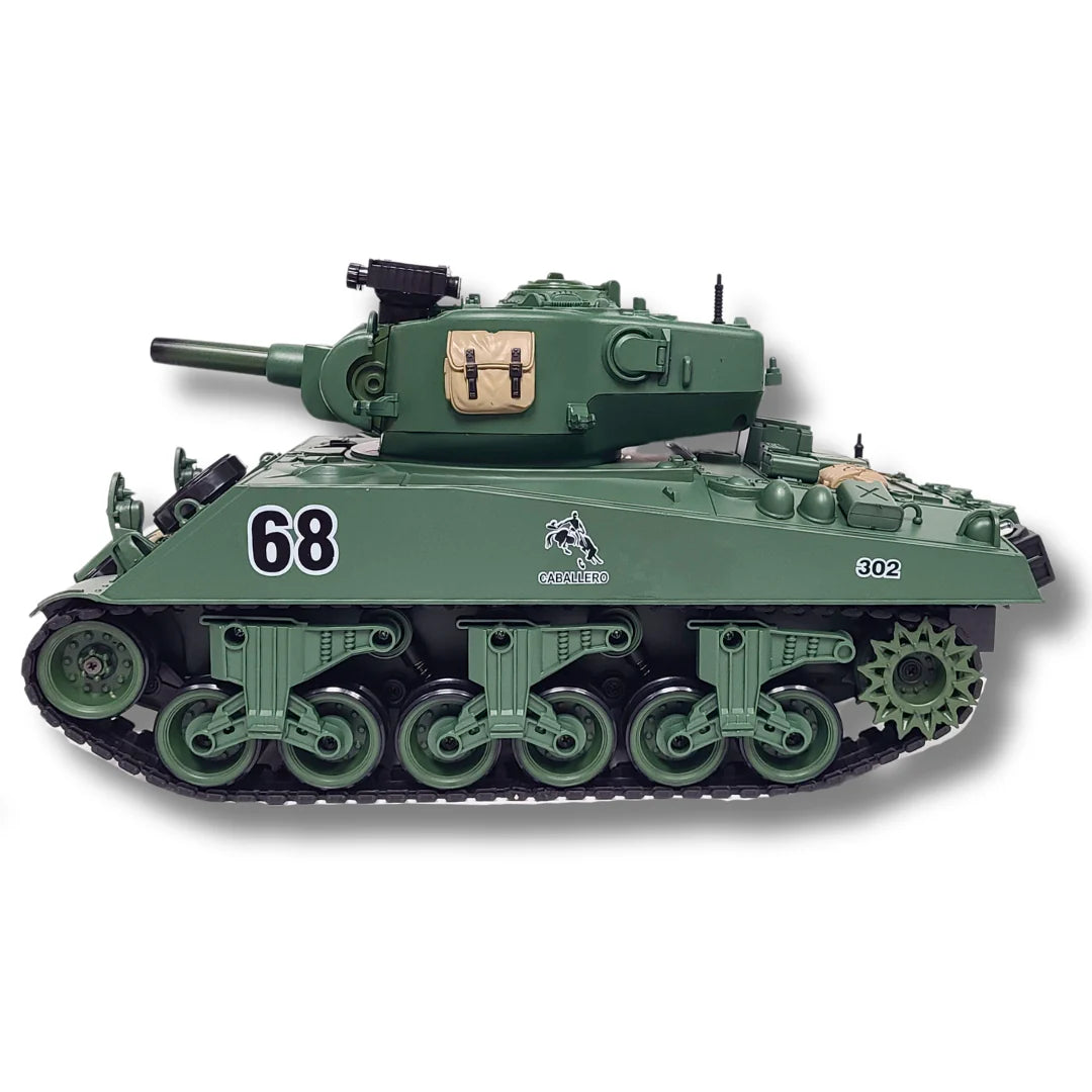Command the iconic M4A3 Sherman, a 1/18 scale RC tank that brings the action of WWII battles right to your control. Known as one of the most pivotal tanks of the war, this model combines realistic features with impressive firepower. Get ready to experience the thrill of tank warfare, maneuvering the Sherman with precision and historical authenticity.