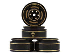 Treal Hobby Type C 1.0" 4-Slot Brass Beadlock Crawler Wheels. Constructed from top quality CNC machined brass with interchangeable brass center rings, These optional beadlock rims are intended for 1/24 and 1/18 Scale rock crawlers to enhance scale realism, style, durability and performance! Features a scale 4-Slot rim with an easy to mount beadlock design and removable hex hub, to use different hub types and tune your offset to your liking and driving style! In addition, adding 200g of total unsprung weight down low to improve the lower center of gravity for enhanced and more stable crawling performance!