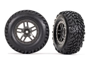 Tires & wheels, assembled, glued (SCT Split-Spoke gray beadlock style wheels, SCT off-road racing tires, foam inserts) (2) (4WD f/r, 2WD rear) (TSM rated)