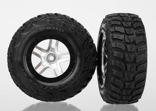 Tire & wheel assy, glued (S1 compound) (SCT Split-Spoke satin chrome, black beadlock wheel, Kumho tire, insert) (2) (4WD front/rear, 2WD rear only)