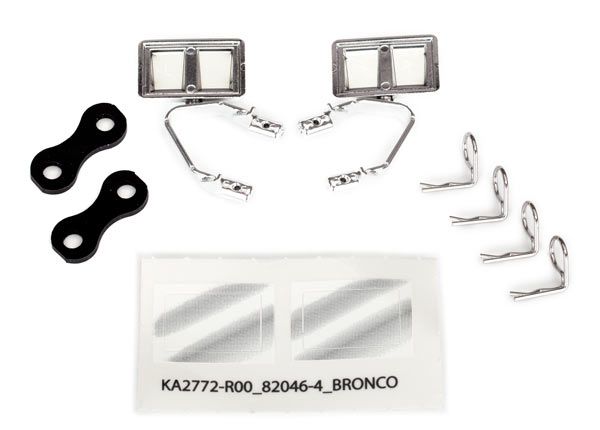 Mirrors, side, chrome (left & right)/ retainers (2)/ body clips (4) (fits #8010 or 9230 series bodies)