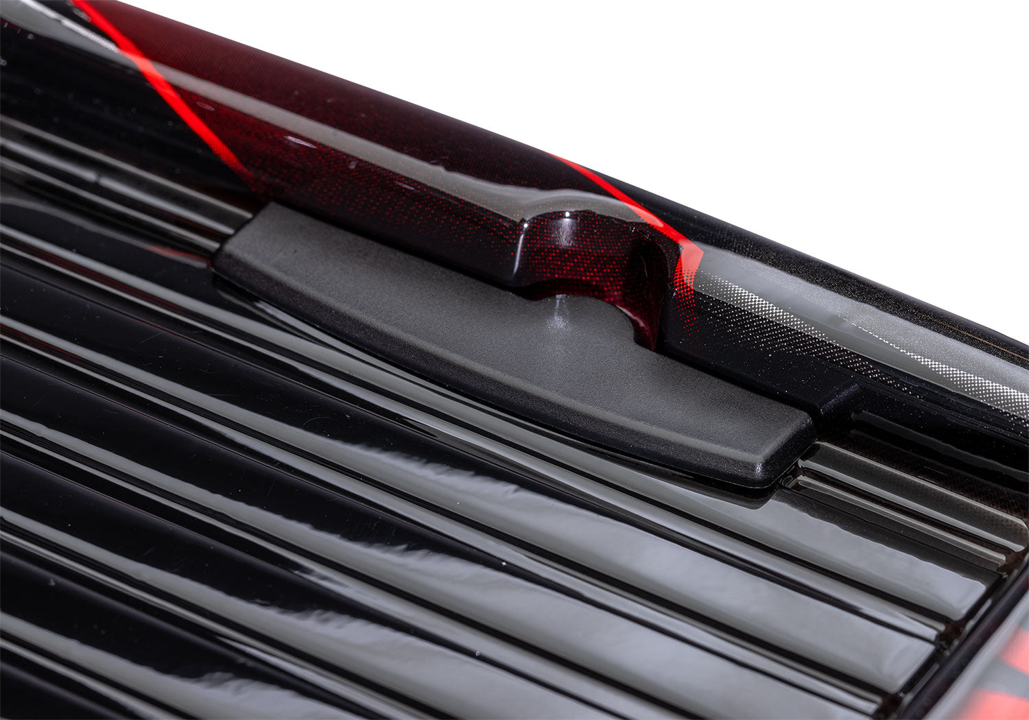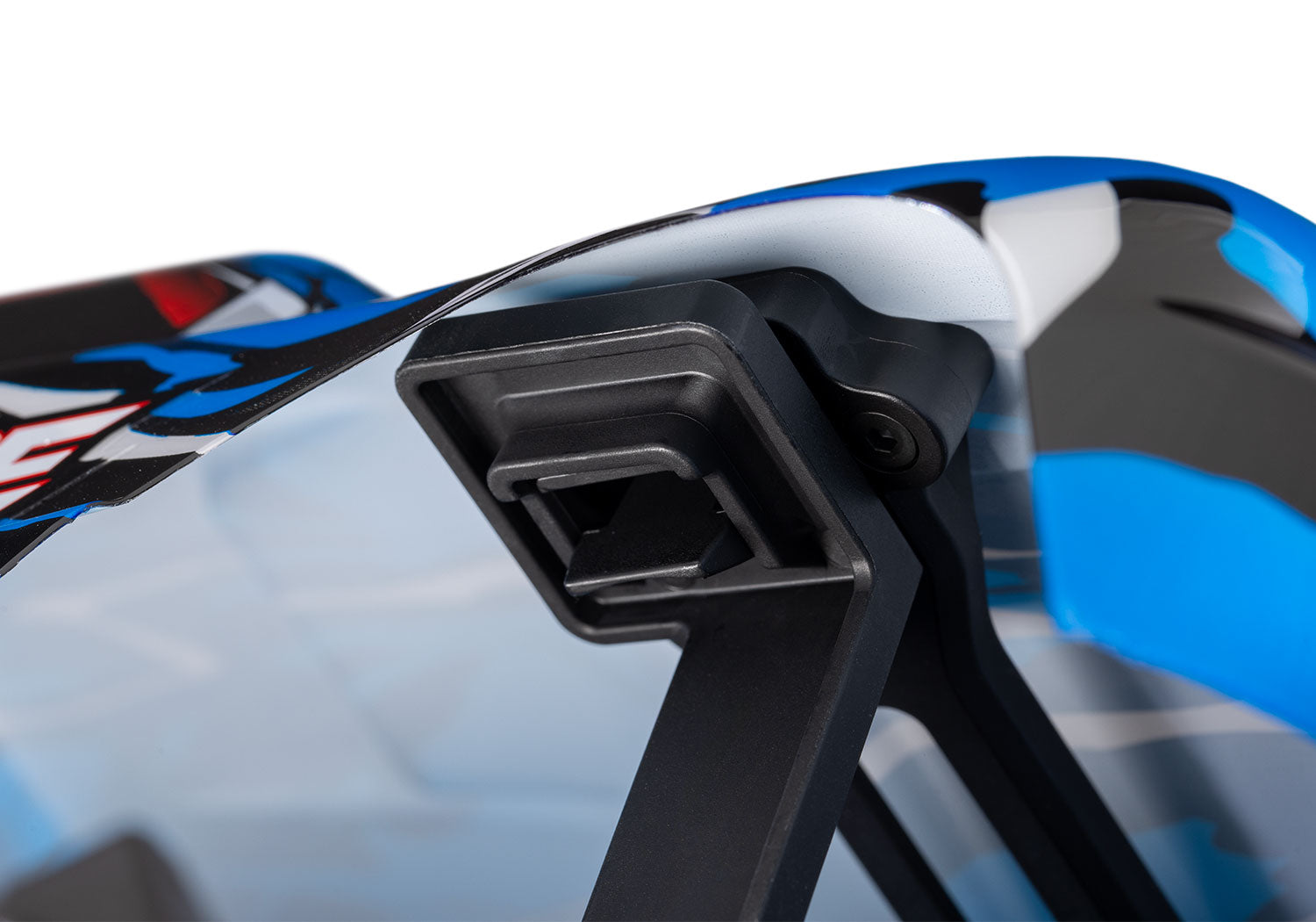 Stampede’s clipless body holds firm no matter how rough the action gets. Heavy duty latches grip the body tightly, but release in just seconds for fast battery swaps. This convenient hidden latching system replaces traditional body clips with reinforced panels to maintain body integrity and resist pull-through damage.