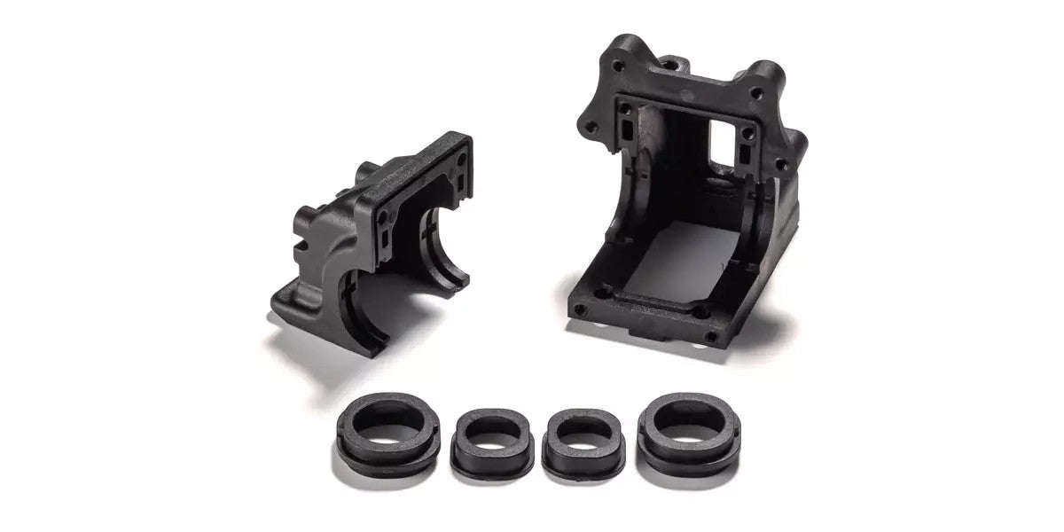 Front and rear bulkheads feature a new design that separates the bearing holders from the bulkheads, enabling adjustable differential mounting height for precise grip tuning. Larger differential pinion bearings are also employed to improve durability under high loads. The front and rear bulkheads feature a split design, allowing for easier access to the differential and improved maintenance. A mechanism has been incorporated to attach the sway centering collar, resulting in an unhindered stabilizing effect.