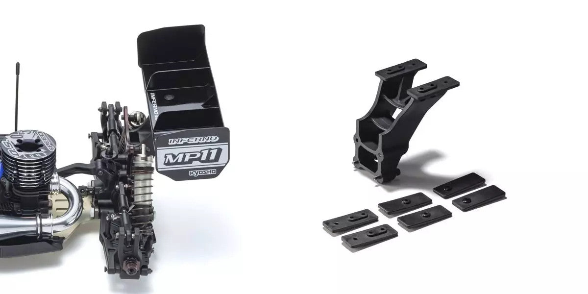 The rear wing stays are lighter than previous versions, and by swapping spacers placed between the wing and the stays, you can adjust the rear wing's position both front-to-back and vertically.The new wing is lightweight and rigid, providing greater downforce. It features 16 pre-marked airflow holes that can be opened to fine-tune downforce for any track or condition.
