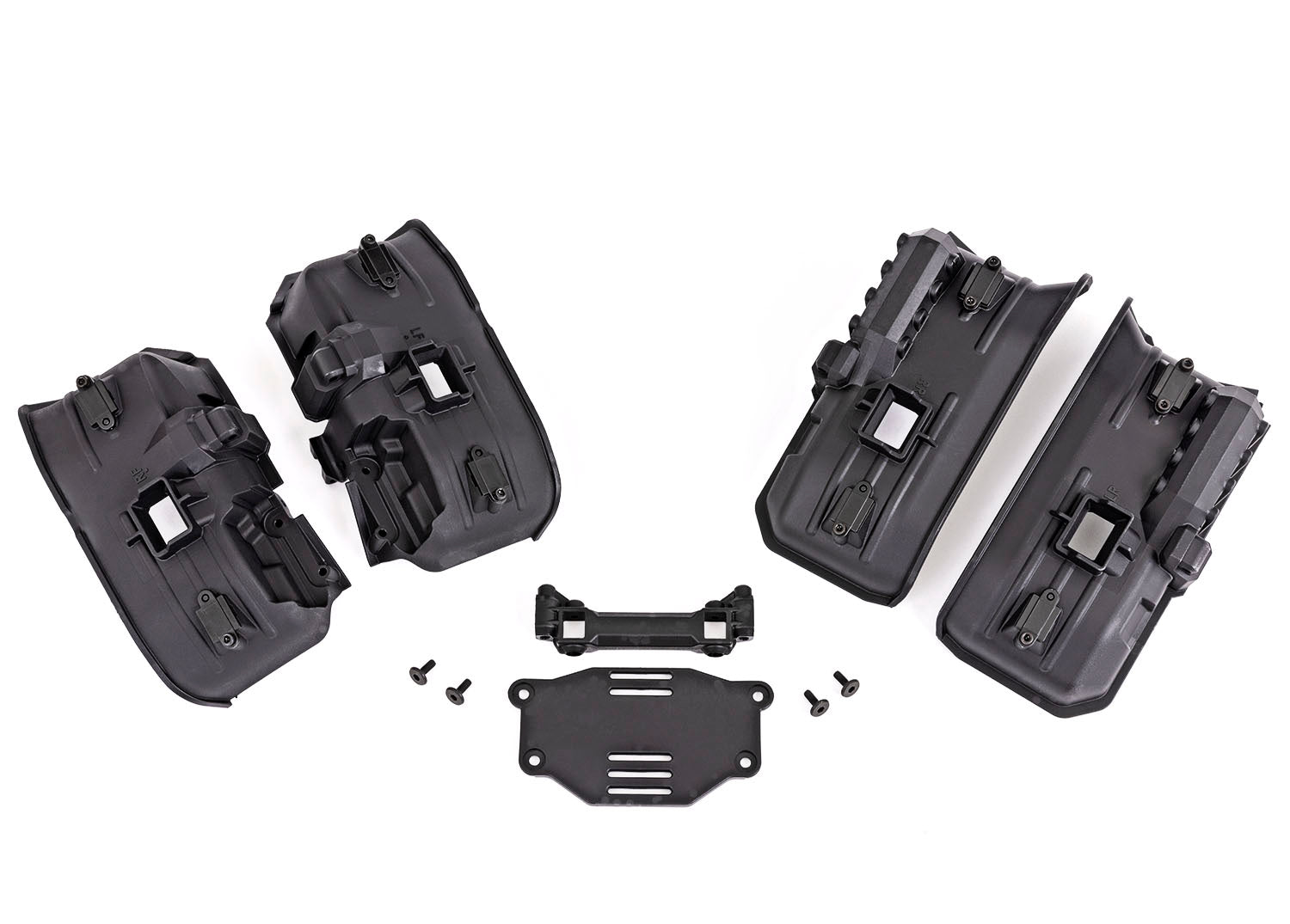 Fenders, inner (wide), front & rear (2 each)/ rock light covers (8)/ battery plate/ 3x8 flat-head screws (4) (for clipless body mounting)